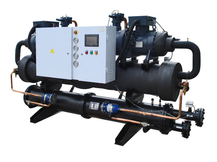精选原装进口名牌半封闭螺杆式和半密闭往复式压缩机。性能好、噪音低。根据客户需要和冷吨位大小,采用单机或多机组合。压缩机可依负载变化,自动交替运转,平衡各压缩机的运行时数,大大延长了冷水机组的使用期限。
